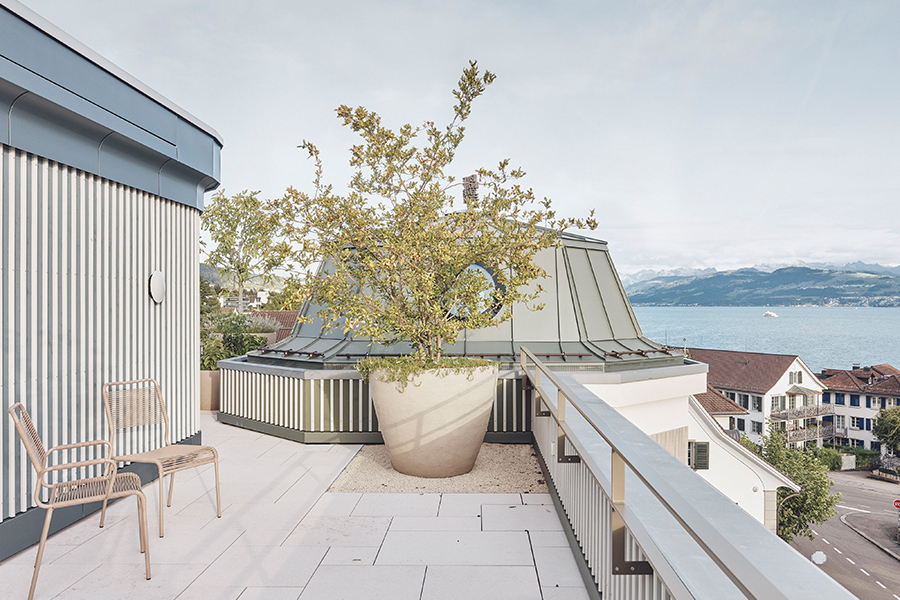 Anbauten (Loggien, Vorbauten, Terrassen). Die Gestaltung der Fassade des neuen Stadthauses bedient sich den quartiertypischen architektonischen Elementen. Durch die atypischen Raumdispositionen werden in den sechs 3.5- bis 6.5-Zimmer Wohnungen interessante Raumfolgen generiert, es entstehen einladende Empfangsbereiche sowie fliessende Wohn-/ Essbereiche. Die eigentlichen Zimmer sind gut möblierbar und können je nach Nutzung direkt dem Wohnzimmer zugeschalten werden. Die grosszügigen Aussenräume runden das Angebot in quartierverträglicher Ausformulierung ab.