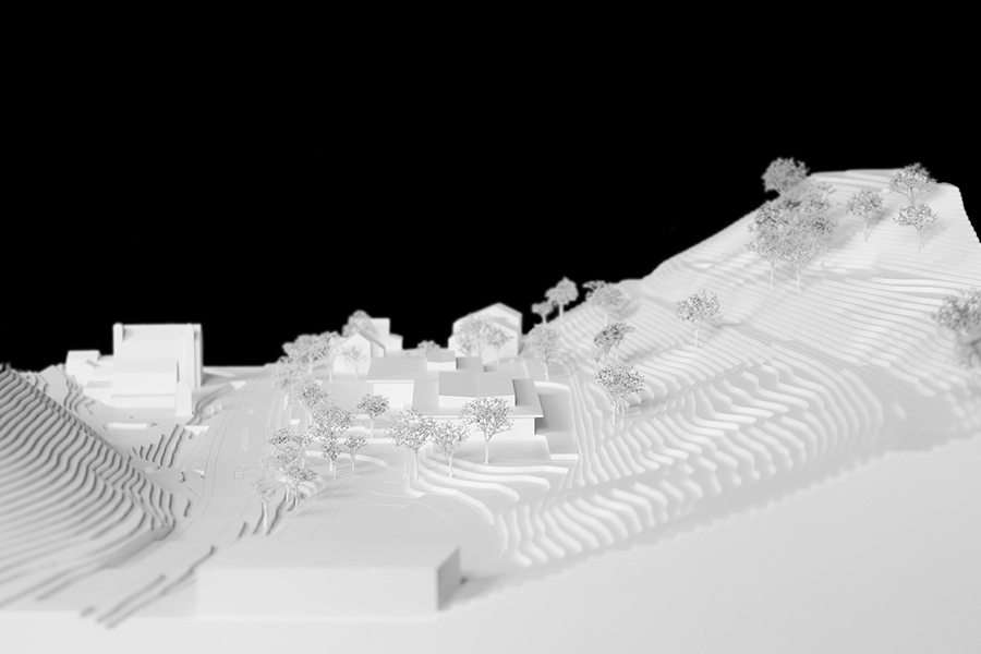 raumfindung architekten erzielen beim eingeladenen „Pitch" für eine Wohnüberbauung in Zumikon den 1. Rang. Die Konzeption verpflichtet sich dem nachhaltigen Bauen und geringem CO2-Verbrauch. Die Wohnhäuser sind aus Holzelementbauweise konstruiert und in den prägenden Lehmkernen sind die Wohnküchen und Bäder integriert.