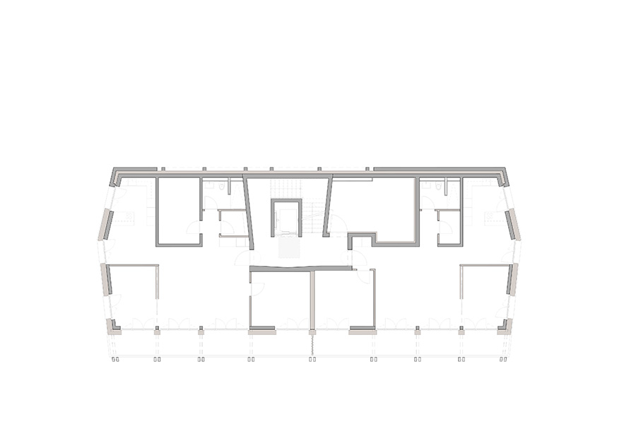 „Das hohe Haus bildet an dieser Stelle keine isolierte Geste, sondern baut mehrfache Dialoge auf. Es spannt zusammen mit dem hohen Kopfbau an der Ecke Bahnhofstrasse/Alleestrasse einen städtischen Raum auf. Auch der zweigeschossige Bau der alten Post an der Bahnhofstrasse wird Teil dieses neuen Ensembles […].“ (Aus dem Jurybericht)