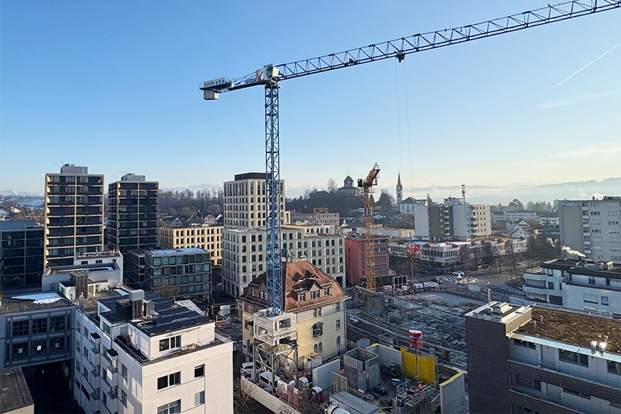 Die beiden Baustellen in unmittelbarer Nähe der Wohnüberbauung Maison Hulot sowie des Stadthauses an der Gerichtsstrasse in Uster kommen planmässig und zügig voran. Nach Fertigstellung der Untergeschosse entwickeln sich beide Bauten des neuen Stadtbausteins in Uster nun gut sichtbar in die Höhe.
